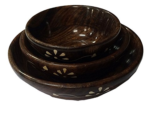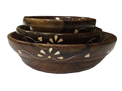 Christmas Gift, Wooden Bowl & White Inlay Work. Set of 3 Bowl, Fruit Bowl, Salad Bowls, Serving Bowl, Brown Color Size 6 X 6 Inch