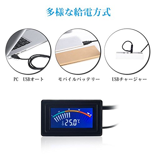 -. Title : Keynice 液晶カラーデジタル温度計 バックライト付き -50℃~+110℃測定範囲 USB電源 温度単位℃/°F切替可 コード長1M