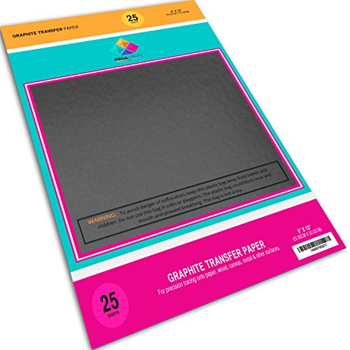 Graphite Transfer Carbon Paper - 25 Sheets (9" x 13") - High Quality Black Tracing Paper Extra Dark And Strong to Transfer on Wood, Paper, Canvas, Art copies & Other Art Surfaces