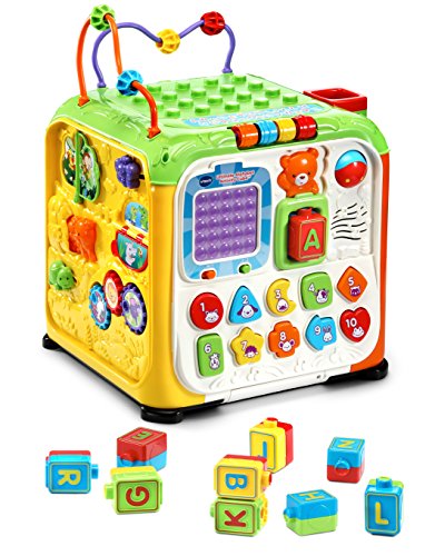 -. Binding : Toy -. Brand : VTech -. EAN : 3417765050008 -. Feature : This five-sided learning cube includes 13 double-sided letter blocks and provides a variety of developmental benefits for years of play / Insert the blocks into the block recognition slot and the cube will show the letter on the LED screen and introduce it through a playful song / Drop the letter blocks into the chute and each block will be counted or will play sounds as it drops down the peg maze / Press the 10 colorful shape buttons to learn about numbers, colors, shapes, animal names and sounds and simple questions that will keep toddlers engaged -. Label : V Tech -. Manufacturer : V Tech -. Model : 80-505000 -. MPN : 80-505000 -. NumberOfItems : 1 -. PackageQuantity : 1 -. PartNumber : 80-505000 -. ProductGroup : Toy -. ProductTypeName : TOYS_AND_GAMES -. Publisher : V Tech -. Studio : V Tech -. Title : VTech Ultimate Alphabet Activity Cube -. Warranty : No Warranty