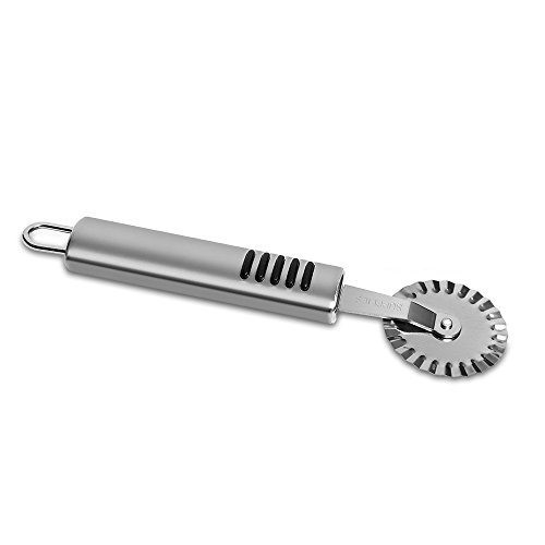 -. Feature : TRANSFORM YOUR KITCHEN into a master bakery with this one handy kitchen utensil. The Topenca Pastry Ravioli Cutter. Slice through fondant, create decorative filled pastas and cut pizza like a pro. / MULTI-FUNCTIONALITY from 2 razor-sharp cutting wheels. Make smooth, clean lines with the straight wheel. For commercial-grade latticework on pie crusts or decorative raviolis, use the scalloped wheel. / STAINLESS STEEL CONSTRUCTION with an aluminum handle makes our sharpener rustproof and lightweight for optimal control. Easy rolling axles ensure smooth cutting. Cleans easily in your dishwasher. / COMFORTABLE ERGONOMIC HANDLE is made of polished aluminum. Non-slip finger pads reduce hand fatigue and maximize control. A stainless steel cross guard protects your fingers from the cutting wheels. / 30-DAY SATISFACTION GUARANTEE lets you try our Pastry Ravioli Cutter risk-free. If our product does not perform to your expectations, we will refund 100% of your purchase P.R.Ice, no questions asked.
