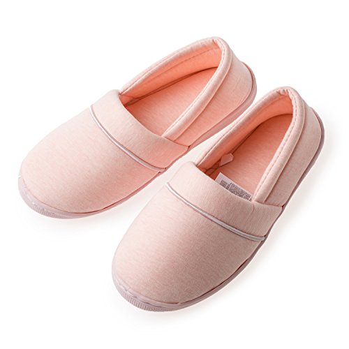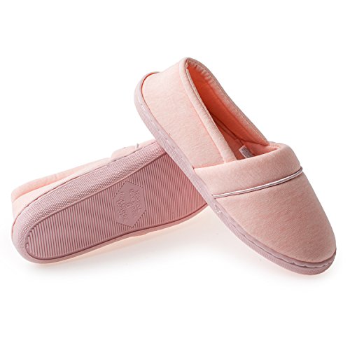 Comfort Cotton Indoor house Slippers with Non-Slip Sole. These slippers are the perfect shoes for the women of all ages. The resilient PE foam and soft cotton fabric, you will feel like you are walking on a cloud with these lightweight slippers, relieves your feet pressure when you go home after work. Pamper the hard working Mom, wife, or friend in your life by giving his tired feet a well deserved rest. These slips make the perfect house shoes or holiday gift. Why is it worth your choice? ★ These slippers are made of high-quality knit cotton. The PE foam insole makes these slippers flexible so they will conform to your feet and retain their shape. ★ Durable TPR environmental rubber soles with added traction, more durable and more non-slip soles to strengthen your home and travel more secure. ★ Lined with PE foam, these super-soft scuffs literally let your feet breathe. They never get smelly, and they launder with easy. Notice: - Keep them clean. They are hand and machine washable. - Be careful with your dog and tell it that the slipper is not a play toy. - Don't bleach. The chemicals in breach seriously damage fabric.