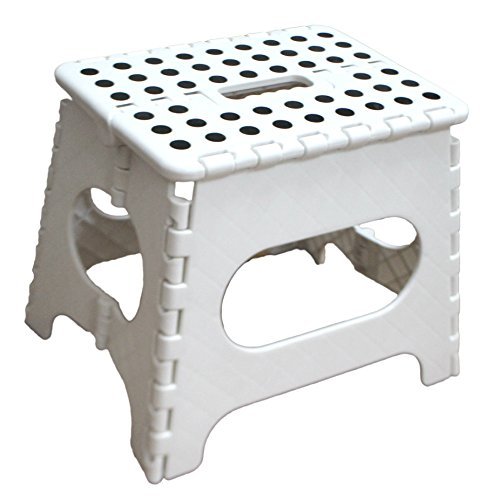 -. Feature : Approx 11 Inch White with dots Ideal use for kids, also for adults / Great folding step stool for in the kitchen, bathroom, RV's and more. / Foldable step stool opens with one flip of the hand. / Handle for easy carrying, Approximately Assembly Dimension: 11" (L) x 9" (W) x 11'(H). / Adult Step Stool holds up to 350 lbs.