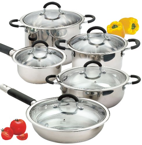 -. Title : Cook N Home 10-Piece Stainless Cookware Set Encapsulated Bottom
