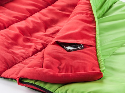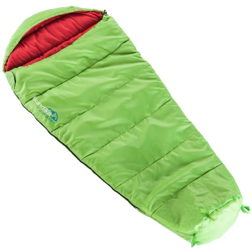 Studio : Skandika Publisher : Skandika Binding : Sports Product Description The VEGAS JUNIOR is not only generous in size and lovely and warm, but is also a real eye-catcher at any sleepover party!;Size: approx. 170 (140 30) x 70/45 cm;Shell: 170 T polyester, water resistant;Filling: 300g/m microfibre;Extreme temperature: -12C 0