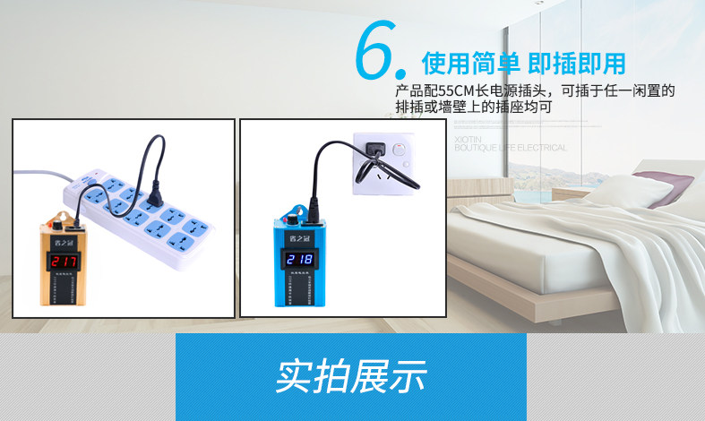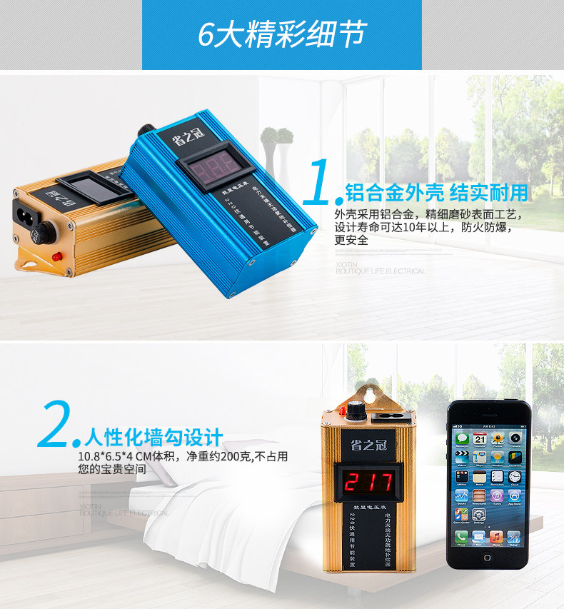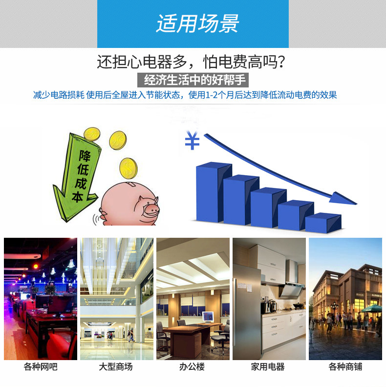 This item doesn't need electric circuit refitting, plug in and play, easy installation. It stabilizes electrical current and protects device from over loading and over voltage situation. Moreover it prolongs the working time of devices by about 35%, which can lower down the repairing cost. It reduces the line temperature, improves power factor and reduces the power loss, so as to save electricity. Wide use range in all inductive electric devices. Suitable for air conditioner, washing machine, freezer and so on.