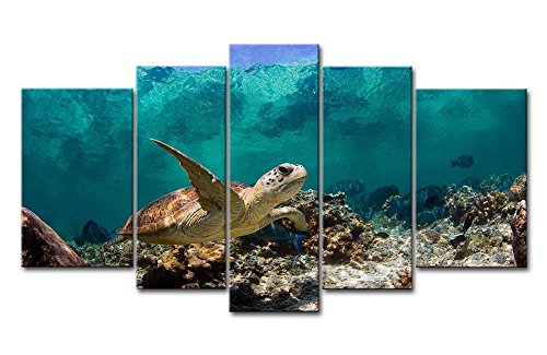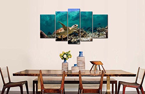 -. Title : So Crazy Art® Blue 5 Panel Wall Art Painting Underwater Turtle P.R.Ints On Canvas The Picture Animal Pictures Oil For Home Modern Decoration P.R.Int Decor