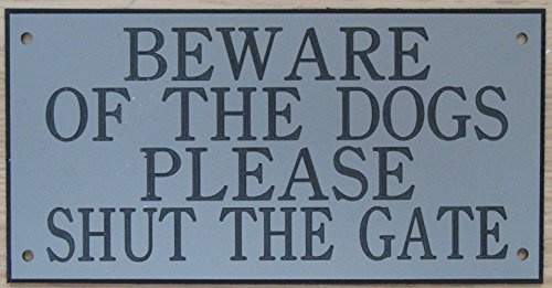 6in x 3in ACRYLIC BEWARE OF THE DOGS PLEASE SHUT THE GATE SIGN IN GREY WITH BLACK PRINT