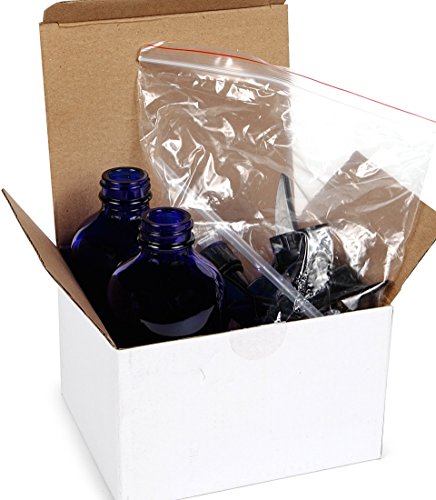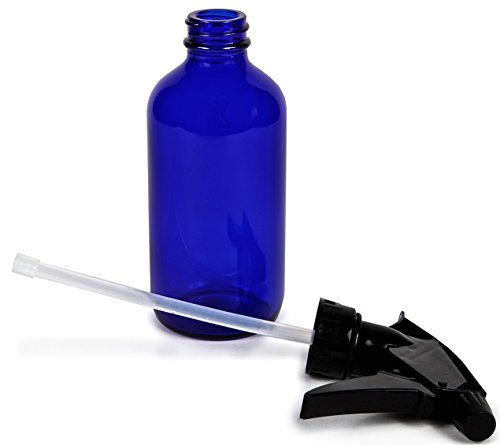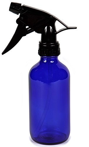 - 8 oz, Cobalt blue glass bottles, with black trigger sprayers.
