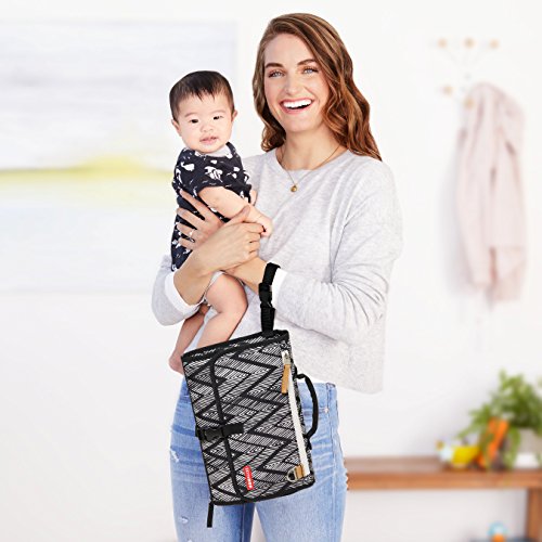 ReleaseDate : 2017-11-17 Studio : Skip Hop Publisher : Skip Hop Binding : Baby Product Product Description The ultimate diaper changing tool makes baby changing easy-no matter where you are. Our ultra-convenient clutch features a wipe-clean, zip-off changing pad, built-in pillow and translucent wipes case for timely refills. The large mesh pocket holds up to four diapers plus creams and other essentials, while the front zippered pocket is perfect for keys, cell phone or other personal items. Simply drop the Pronto in your bag, strap it to your wrist or clip it to your stroller and go. Product Features: -Front zipper pocket for keys, wallet, phone, and personal items -Drop it in any bag, strap it to your wrist or clip it to your stroller -Pronto pillow keeps baby's head comfy -Mesh pocket holds up to four large diapers, creams and other essentials -Translucent wipes case is see-through for timely reloads -Two products in one-changing pad zips off of clutch for independent use -Extra-wide wipe-clean changing pad -Size - Closed (inches): 11.75l x 4w x 8.25h; (cm): 30l x 10w x 21h -Size - Changing pad (inches): 23.5l x 21.75w; (cm): 60l x 55w 0