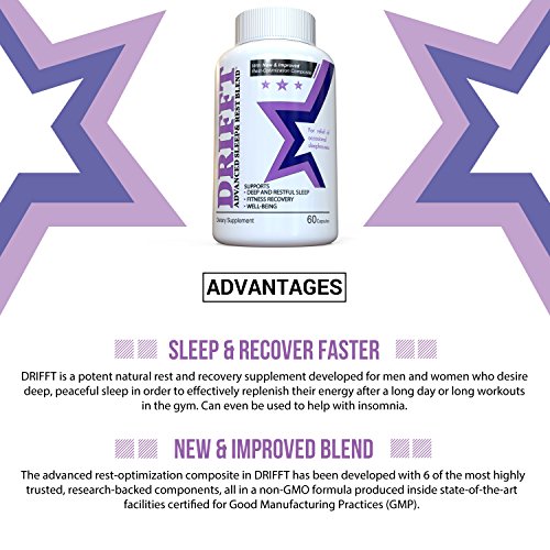 SLEEP & RECOVER FASTER - The best natural sleep pills are here! DRIFFT is a potent natural rest and recovery supplement developed for men and women who desire deep, peaceful sleep in order to effectively replenish their energy after a long day or long workouts in the gym. Also great for insomnia. Whether you're looking to support bodybuilding goals or just want to be at your best for work, this all-natural sleep enhancer will help you get where you want to go.