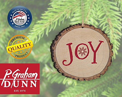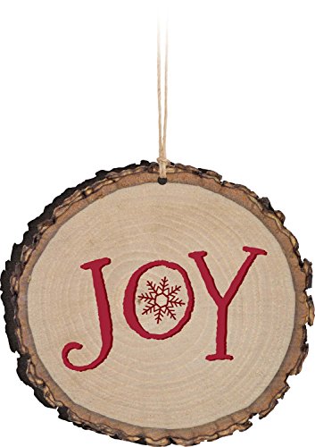Joy Snowflake Red Rustic Bark Look Wood Christmas Ornament