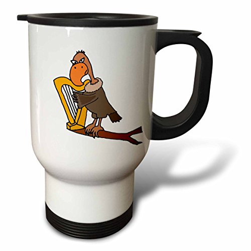 3dRose Funny Buzzard Playing Harp Travel Mug, 14 oz, Stainless Steel, White