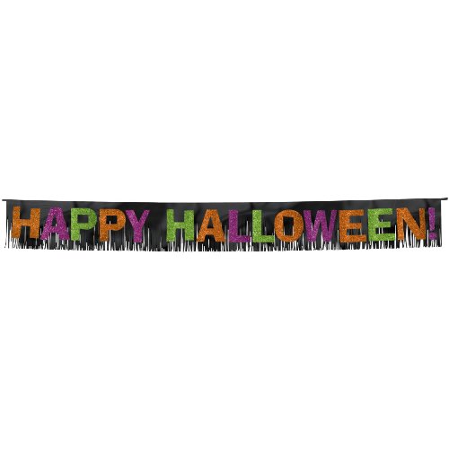 Halloween Foil Fringe Banner With Glitter Paper Letters- 12 1/2 inches X 10 feet