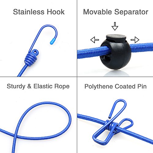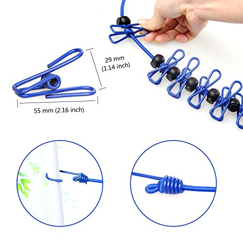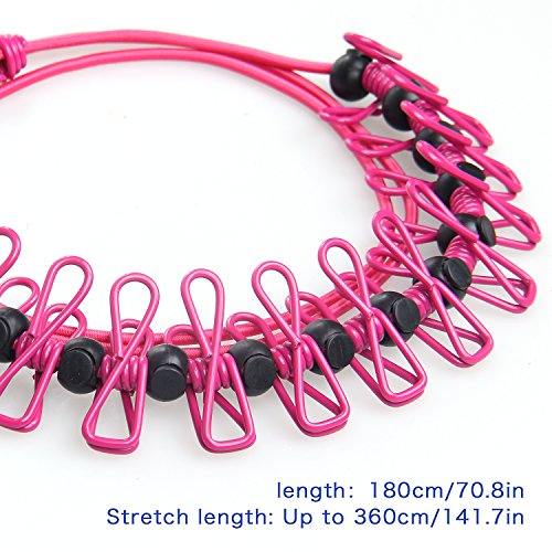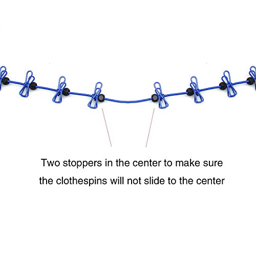 - 【Durable & High Quality】:Our Clothesline are made of bungee cord, and 12 pieces of metal clothespins cover with premium PP materials, which is firm and durable than other plastic clothespins. It can ensure hold up the weight of cloth and clip clothes tightly.
