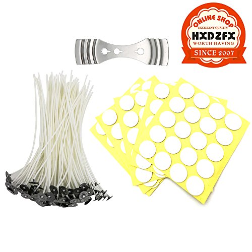 HXDZFX Candle Wicks 4 Inch 100 Pieces with 100 Pieces Wick Stickers and Metal Holder for Candle Making,Candle DIY
