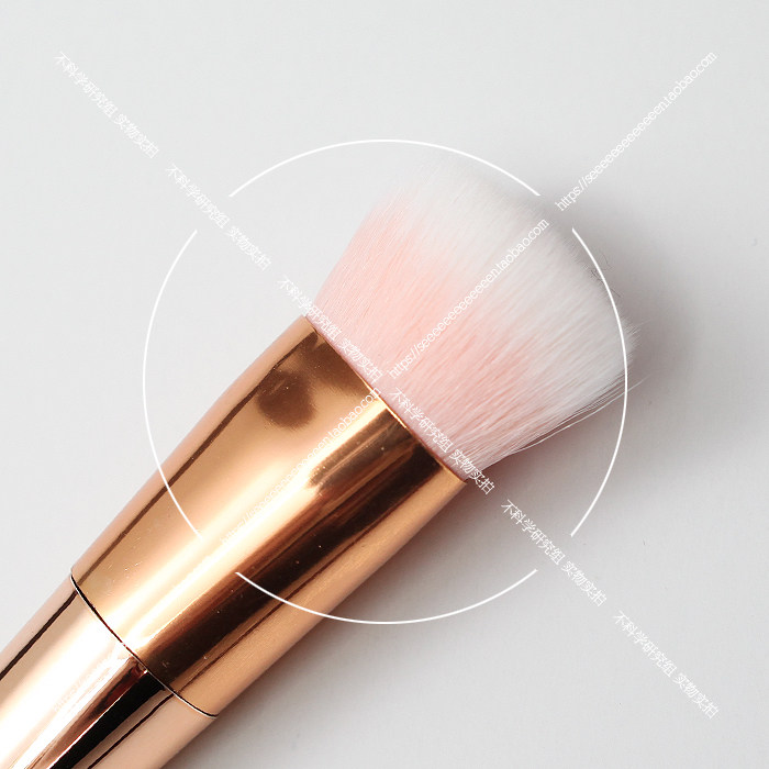 这支刷有三个截面,最大一面用来均匀涂抹粉底液,两个小的截面可以用来修饰鼻翼、眼窝等细节