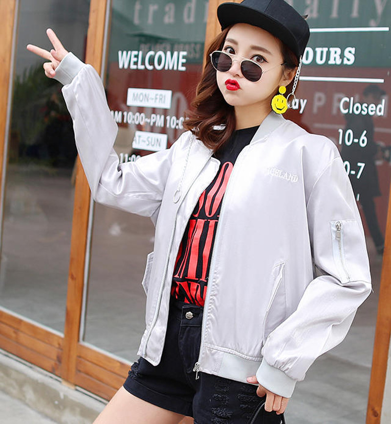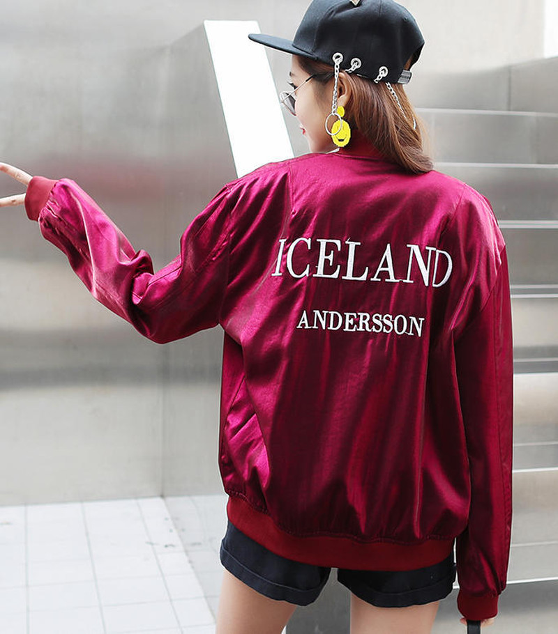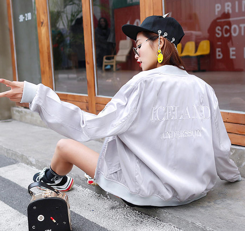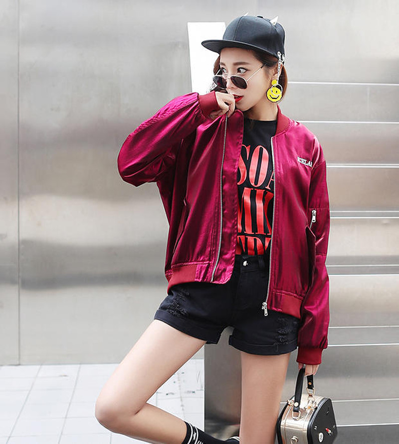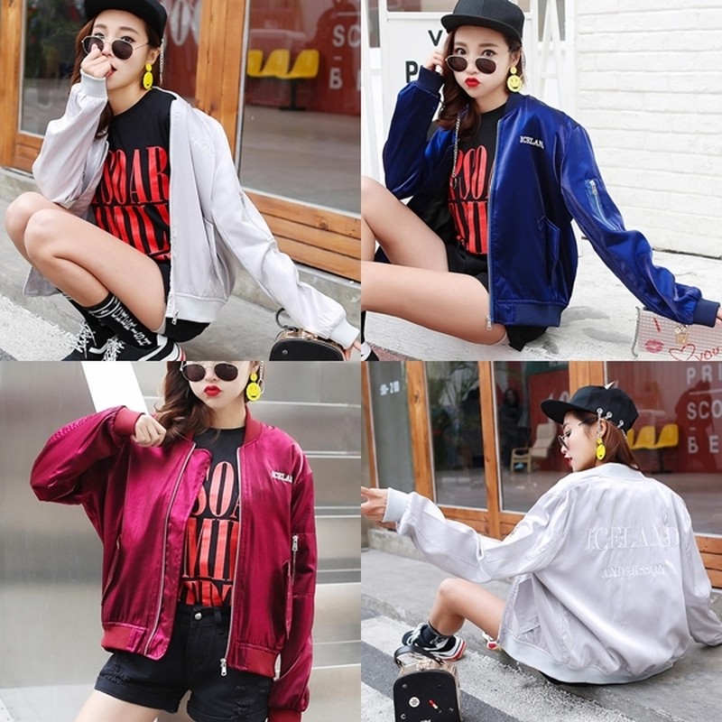 ♢ポイント♢ バックロゴがキュートなサテン生地のアウターです。 ビビッドなカラーがコーデのアクセントに◎
