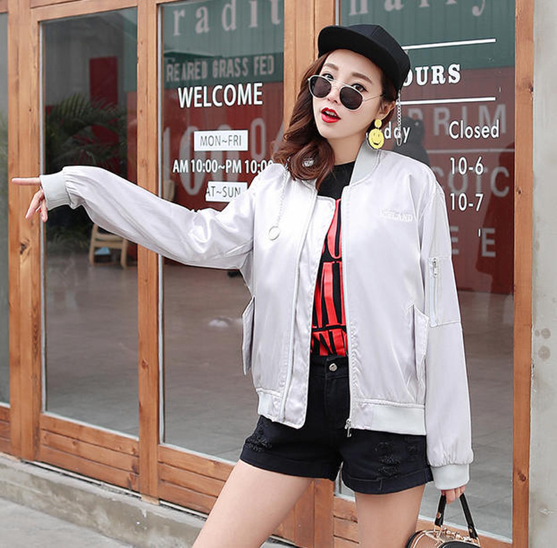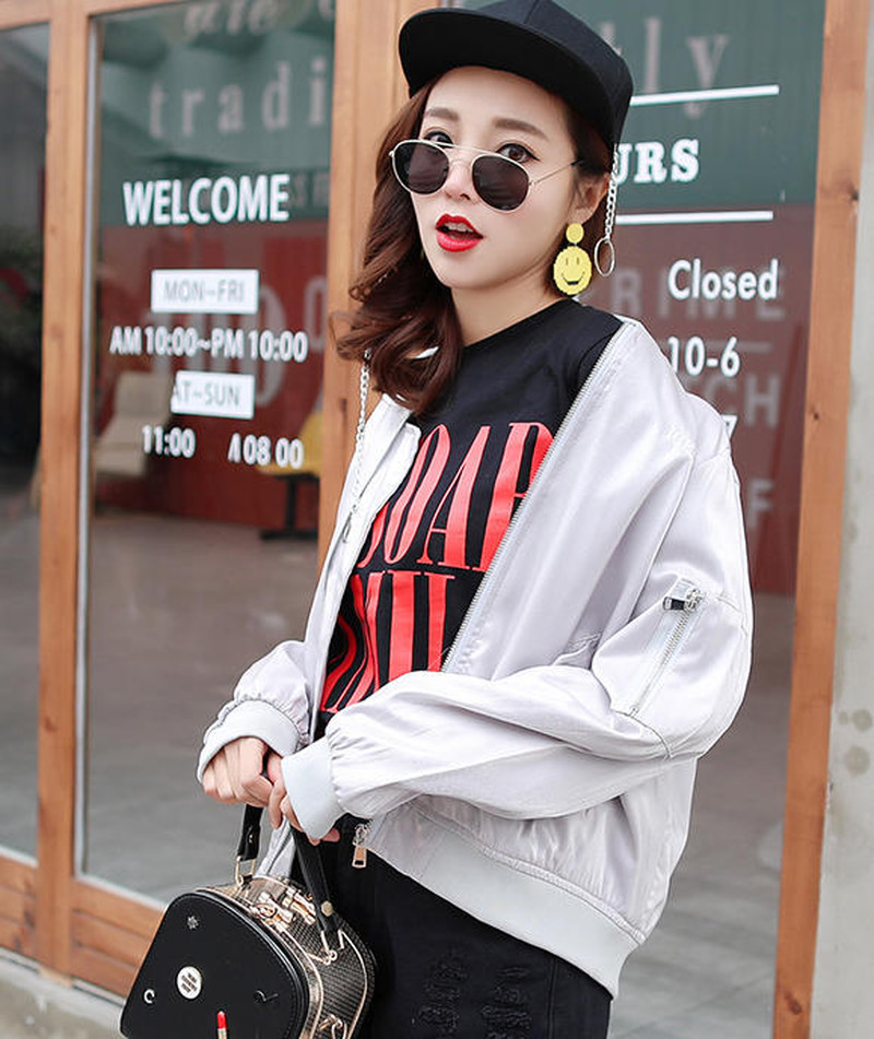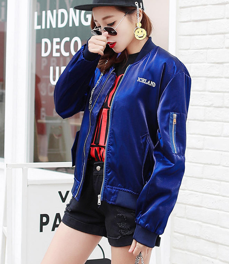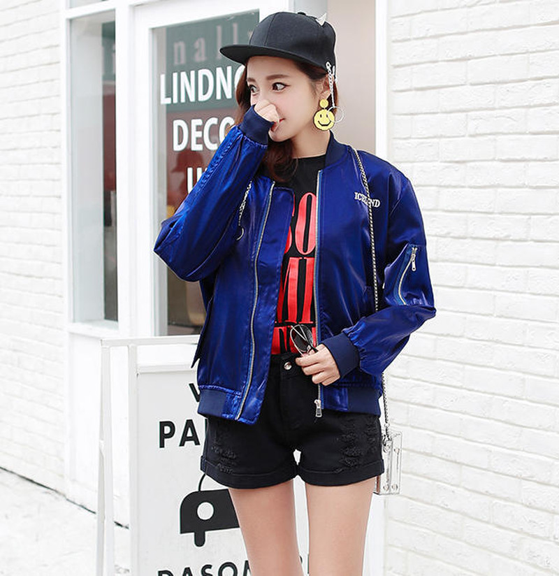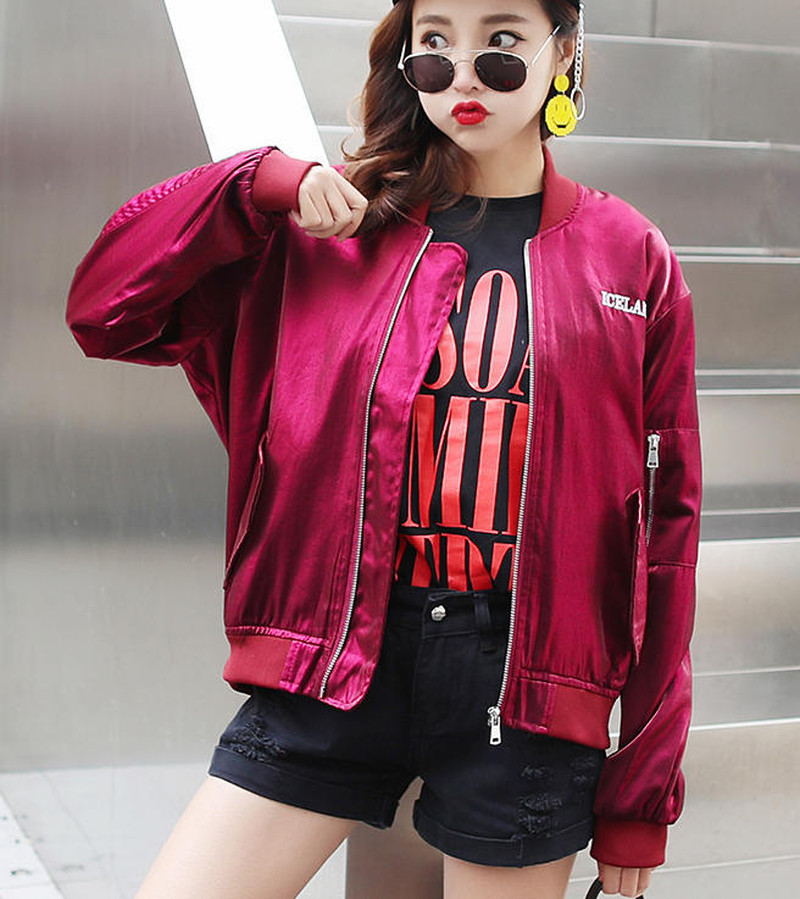 ♢ポイント♢ バックロゴがキュートなサテン生地のアウターです。 ビビッドなカラーがコーデのアクセントに◎