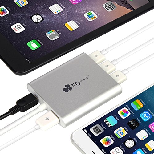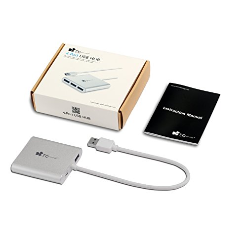 EC Technology Premium 4-Port Aluminum USB 3.0 HUB 5Gbps Speed OTG with built-in Cable for iMac, MacBook, MacBook Pro, MacBook Air, Mac Mini, or any PC - Silver B010LTO7DA