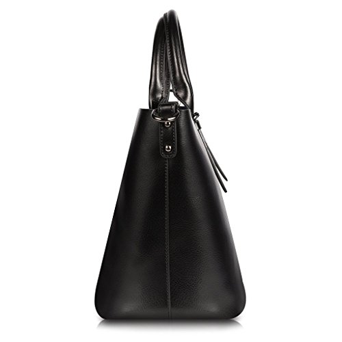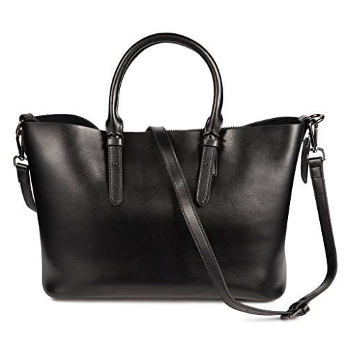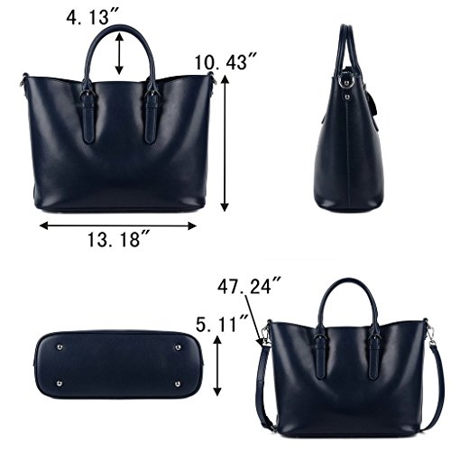 -. Feature : This tote bag is made of high quality smooth cow split leather, it makes this bag noble and the unique design highlight feminine elegance / Suitable for you in many occasions: casual, traveling, school, party, shopping, etc. / Roomy for storing IPAD AIR, A4 magazine, wallet, cell phone, etc / 6"drop top handles may used as tote bag, adjustable and detachable shoulder strap / The leather bag has comfortable flat tote handle, adjustable and detachable shoulder strap
