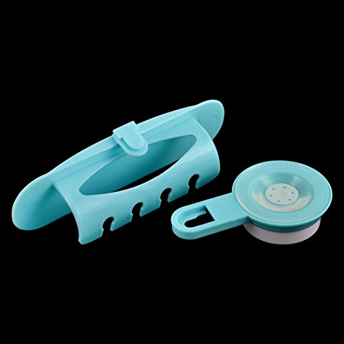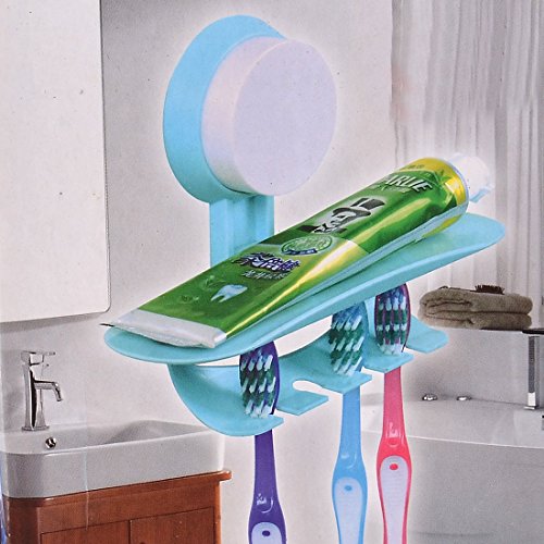 uxcell Suction Cup Wall Mounted Toothpaste Toothbrush Combination Frame Holder Blue