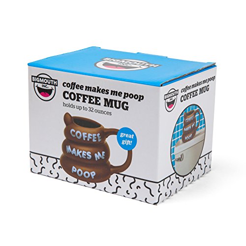 -. Brand : Big Mouth Toys -. Color : Brown -. Feature : Looks like poo and lets the world know coffee makes you go / Great gift for any coffee drinker / Comes in colorful gift box / Holds approximately 8 ounces / Hand washing recommended -. Label : Big Mouth Toys -. Manufacturer : Big Mouth Toys -. ProductGroup : Kitchen -. ProductTypeName : KITCHEN -. Publisher : Big Mouth Toys -. Studio : Big Mouth Toys -. Title : Big Mouth Toys Coffee Makes Me Poop Mug, Brown
