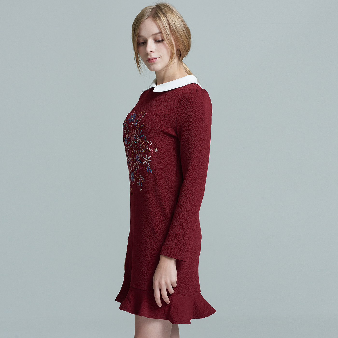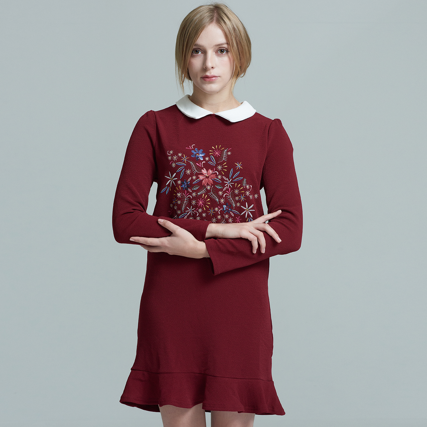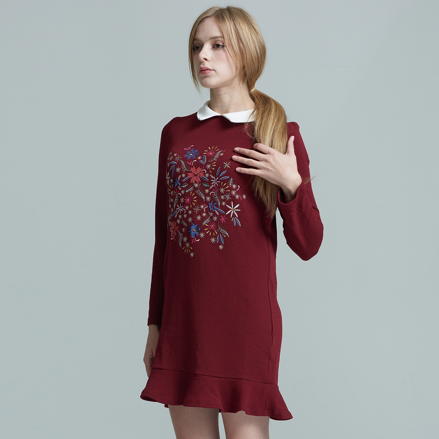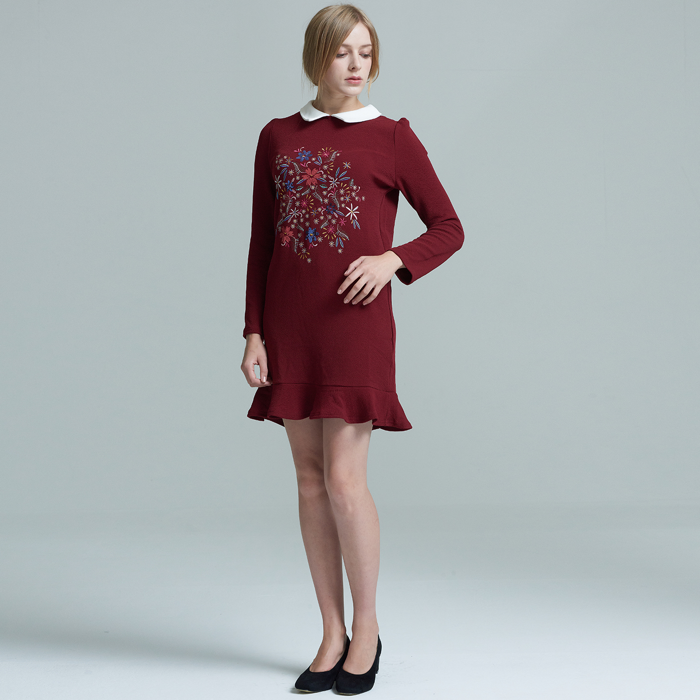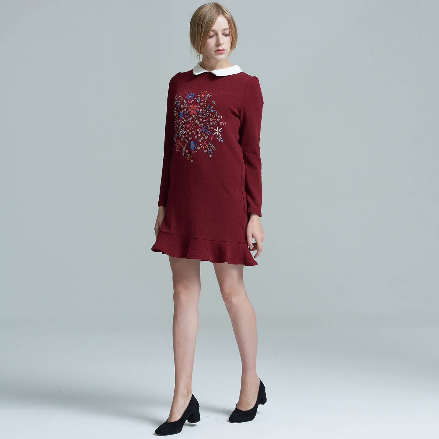 귀여운 카라와 자수디자인이 사랑스런 프릴 원피스입니다.
