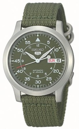 Seiko Men''s SNK805 Seiko 5 Automatic Green Canvas Strap Watch