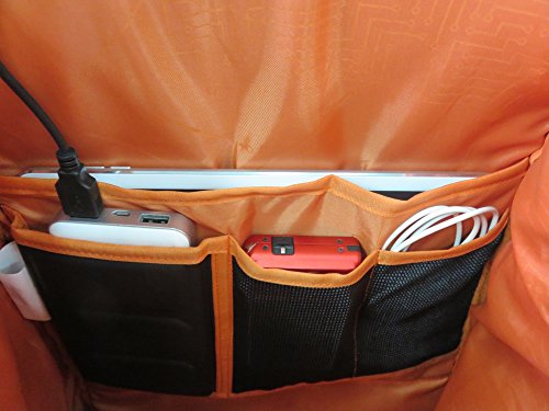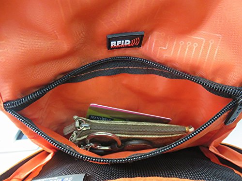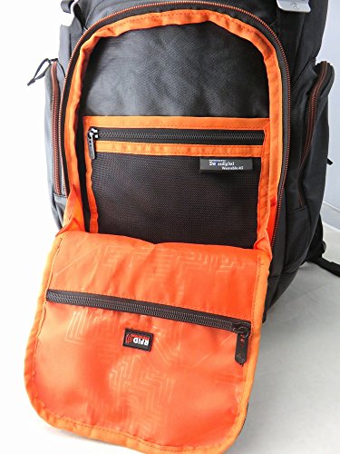 -. Feature : Constructed of durable coated 600D polyester / Padded laptop sleeve holds laptops up to 14" / RFID Protection / Dual side pockets / Mesh padded shoulder straps and back panel