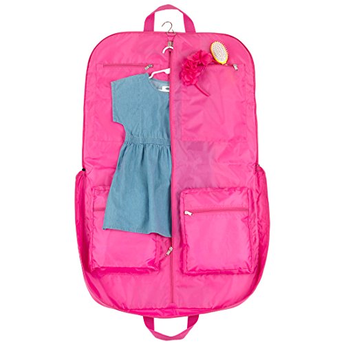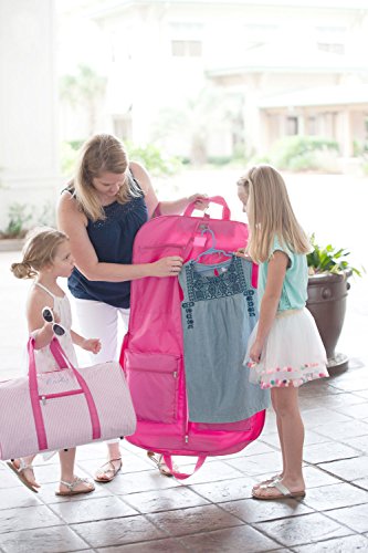 -. Brand : Wholesale Boutique -. Color : Pink Butterfly - 196 -. Department : womens -. Feature : Folded: 24" L x 2.5" W x 19" H / Hanging: 38" H x 24" W / Polyester Inside Lining / Zipper Closure Clothing Compartment / Multiple Inside Zipper Pockets -. Model : GM40 -. PackageQuantity : 1 -. ProductGroup : Apparel -. ProductTypeName : LAGE -. Size : Large -. Title : Pink Seersucker Travel Garment Bag with Extended Hanger Can be Personalized