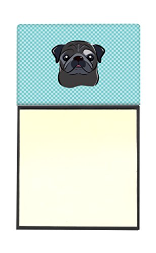 Caroline's Treasures Checkerboard Blue Black Pug Refillable Sticky Note Holder or Postit Note Dispenser, 3.25 by 5.5", Multicolor