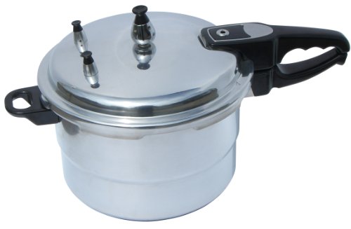 4 Qt/3.78 Ltr Aluminum Pressure Cooker; Constructed of polished aluminum; Capsule bottom creates even heating; Cooks three to ten times faster than ordinary cooking methods; Sure-locking lid system for safety; Overpressure release valve for added safety.