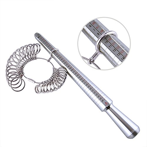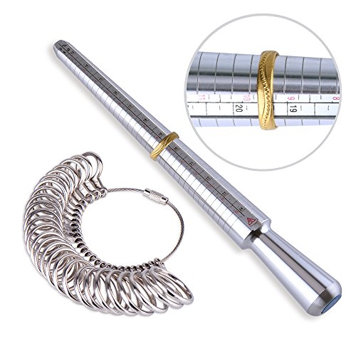 Kuuqa Aluminium Ring Sizer Mandrel and Stainless Iron Ring Sizer Guage Set with 2 Piece Jewelry Polishing Cloth