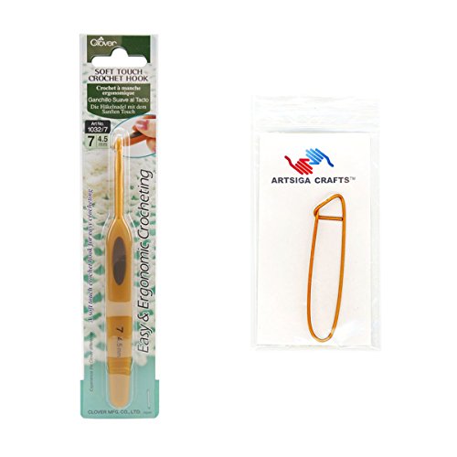 - Bundle includes 1 Clover Soft Touch Crochet Hook Size 7/4.5mm with 1 Artsiga Crafts Stitch Holder 1032/7