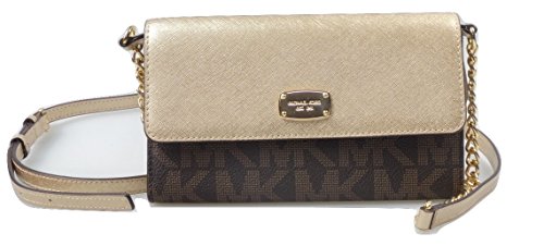 -. Title : MICHAEL Jet Set Item PVC Large Phone Wallet Crossbody in Brown and Pald 35H6MTTC7B BRN/PLGOLD