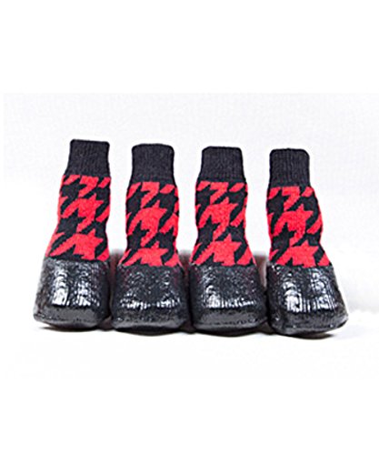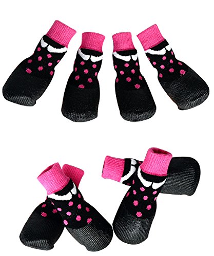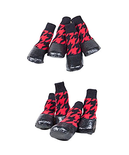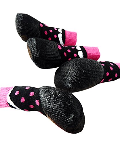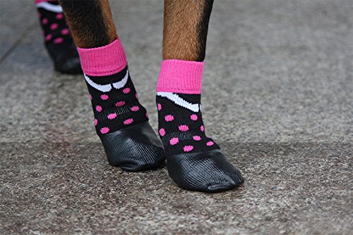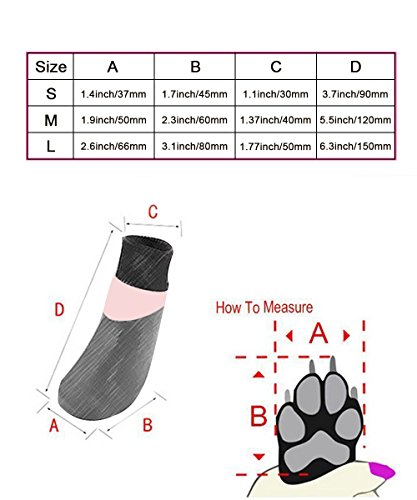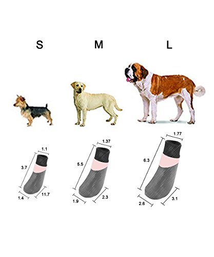 -. Feature : 【Protective Shoes】: The bottom of the sock has a thick rubber with water-repellent and skidproof, let your pets can walk and run through the wet ground. / 【Clever Design】:Elastic design is easier to wear with more comfortable, also have delicate design with elastic top line can prevent from falling off. / 【Warm Care】: High quality cotton material can effectively protect your doggie from chill, and prevent the dog's claws from frostbite in cold weather. / 【Features】: It has the characteristics of waterproof, anti-dirty, anti-skid and perspiration, suitable for dogs to use when outdoor sports in winter. / 【Gift Of Love】: There are three styles of different sizes and choose the best fit one for your lovely dog. It must be cute!