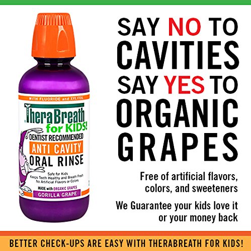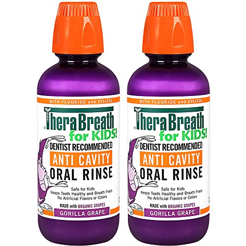 TheraBreath for Kids Dentist Recommended Anti Cavity Fluoride + Xylitol Oral Rinse - Organic Gorilla Grape Flavor, 16 Ounce (Pack of 2)