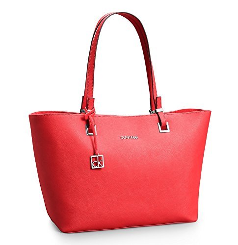 Raised calvin klein logo; footed bottom; interior zip close pocket