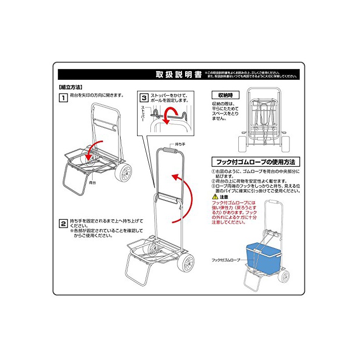 ●재질:본체/철(에폭시 수지 도장)고, 손잡이/우레탄폼,타이어/EVA수지,휠/폴리프로필렌,로프/합성 고무(폴리에스텔 피막)●조립 사이즈(약):폭560×(길이)깊이520×높이990mm●수납 사이즈(약):560×630×두께200mm●중량(약):4.3kg