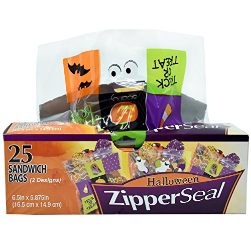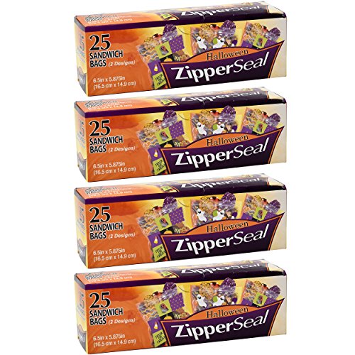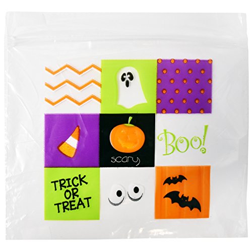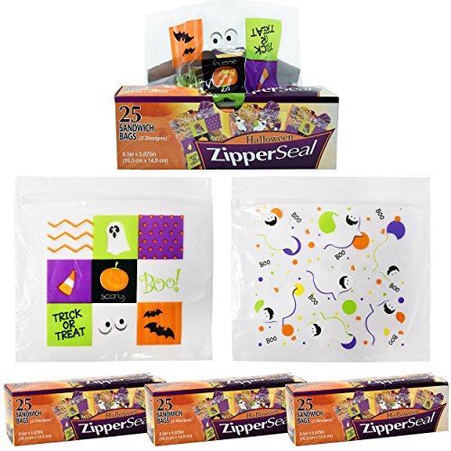 Halloween Plastic Sandwich Bags Zipper Seal Trick and Treat Candy Goodie Party Bags 100 Bags 2 Designs (25 Bags per Box)