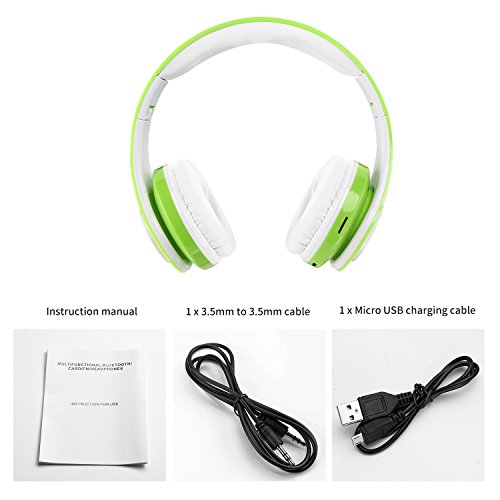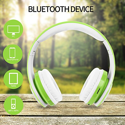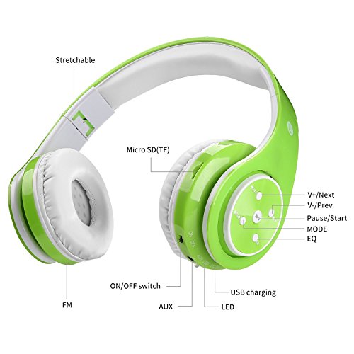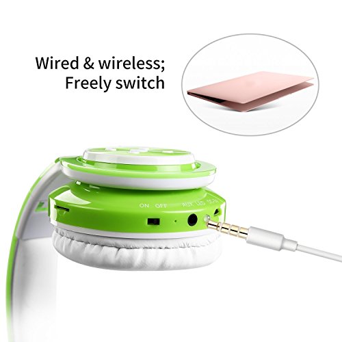 Votones-Kids Wireless/Wired Bluetooth Headphones Foldable Adjustable Girls Boys Earphones with Microphone Aux in Hand Free SD Card FM for Smartphone Tablet Pc (Green)