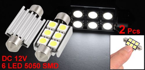 uxcell 2 Pcs Car 38mm White 5050 6 SMD Festoon LED Dome Light w Heat Sink