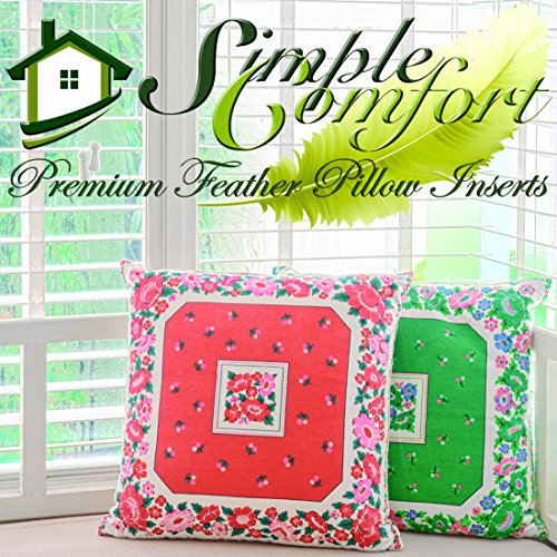 Simple Comfort Premium Feather and Down Pillow Inserts - MATERIAL - A soft 100% cotton down proof cover is overfilled with the perfect blend of 95% feather and 5% down providing optimal softness and support. High quality extra tight seam stitching is used to keep feathers inside where they belong. USAGE AND CARE - Made in varying sizes to fit the most common pillow covers and shams. Whether it's the euro sham on your bed or the decorative throw pillow on your couch, our pillow inserts will give you the plump fluffy look you're striving for. For indoor use only. Spot clean when needed. HOW TO MEASURE AND FIT - Measure your sham or pillow cover flat along the seam from corner to corner. For optimal results, you will want your pillow insert to be 1 to 2- inches larger than the sham or cover to give you a full and plump look. MADE IN THE USA - While a portion of the materials used are imported, all construction and manufacturing is proudly done in our Cincinnati, OH facility. HIGH QUALITY STANDARDS - All pillows are carefully audited and inspected for quality assurance. Our products are ADFC (American Down & Feather Council) certified as well as IDFL (International Down & feather Testing Laboratory) tested. We stand behind our standards and quality. All pillows have a manufacturer's 2-year warranty.Feature