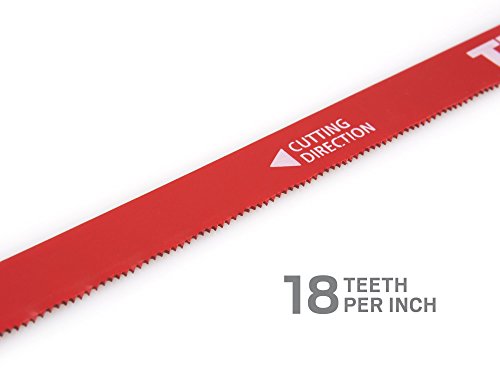-. Feature : 18 TPI / Zähne/Zoll / Für das Sägen von Metall mit einer Dicke von 1/8 Zoll (3,2 mm) bis 3/16 Zoll (4,8 mm), für Bewehrung und schwere Rohre / Flexible Doppel-Metall-Bauweise verhindert Brechen und bleibt länger scharf / Universal-Sägeblätter für 12 Zoll / 30 cm Bügelsägen / 2 Sägeblätter, 30 cm (18 Zähne/Zoll)