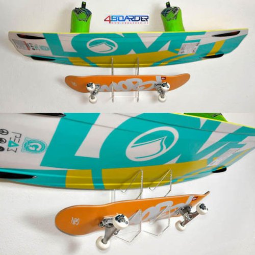 DOUBLE board rack wall mount for 2 wakeboards, snowboards, kiteboards, longboards, skateboards, wakeskates and skimboards
