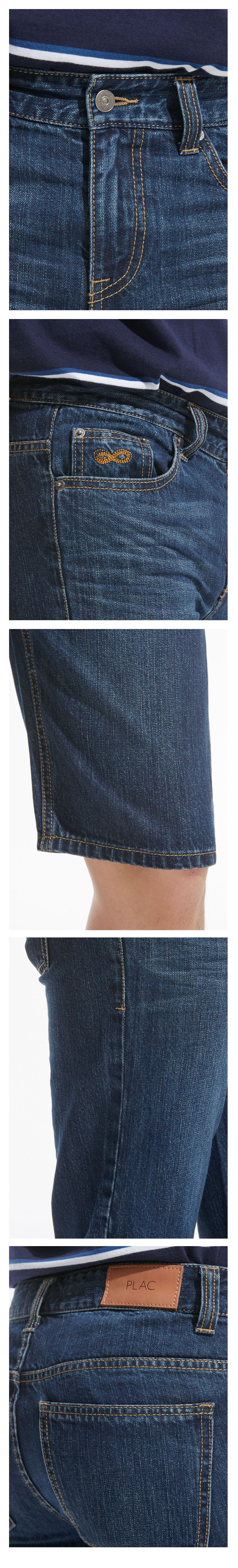 - 다크한 인디고 워싱그라운드에 베이직한 핏의 무릎기장 하프팬츠로, 탄탄함을 살린 중량감과, 논스판 원단을 사용하여 데님 특유의 오리지널리티를 강조합니다. - 다크한 컬러의 원단과 어울리는 톤다운 된 베이지 커럴의 스티치, 빈티지한 엔틱실버 도금의 금속 부자재를 사용하여 컬러의 조화를 살렸습니다. - PLAC만의 고감도 스톤워싱 기법만을 가미한 팬츠로서, 절제되고 깔끔한 하프팬츠입니다. - 다양한 썸머 아이템과 매칭가능하며, 착장시 베이스포인트가 되어주는 바텀입니다. | |