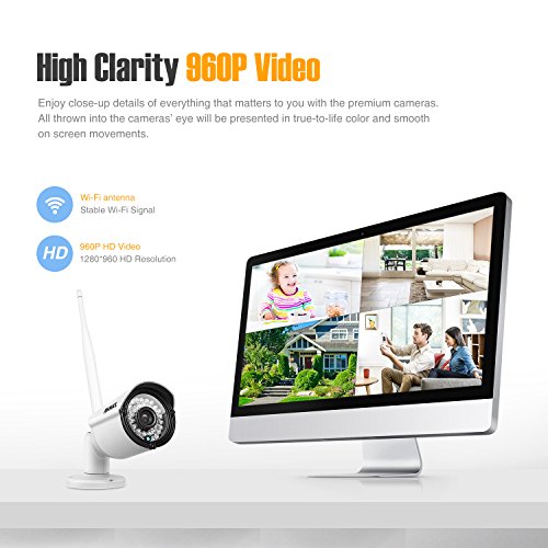 -. Title : Annke 4-Channel HD Wireless Security Camera System and (4) 960P 1.3-Megapixel Indoor/Outdoor IR Bullet Network/IP Cameras,Wi-Fi access, Real Plug-and-Play System, No HDD