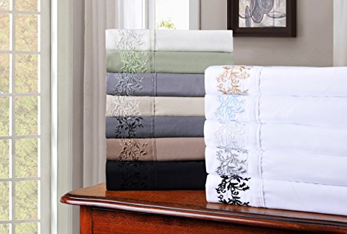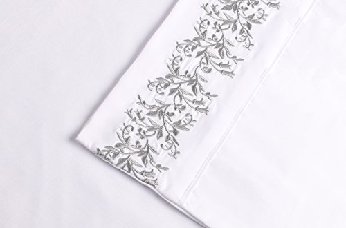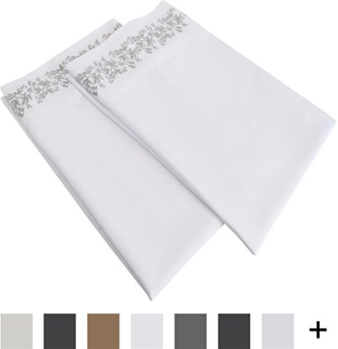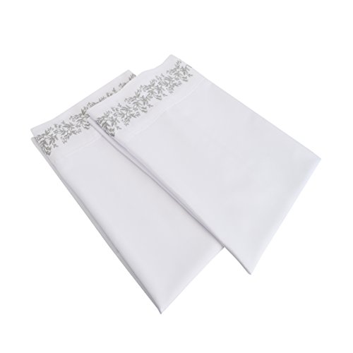 Super Soft Light Weight, 100% Brushed Microfiber, Wrinkle Resistant, King 2-Piece Pillowcase Set, White with Grey Floral Lace Embroidery