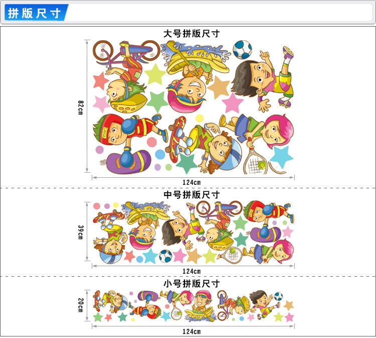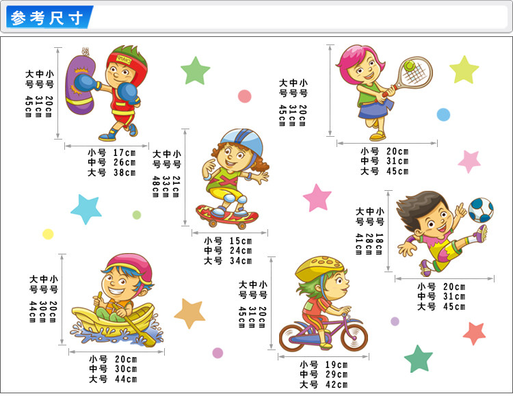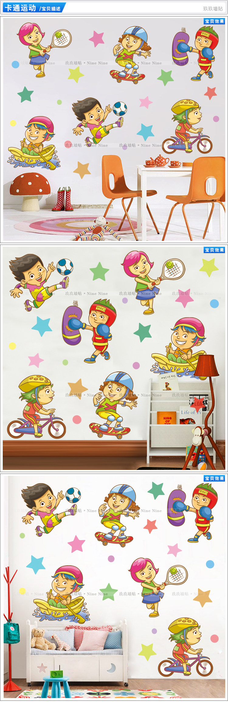 幼儿园体育运动墙贴自行车划船网球拳击网卡通人物动作贴纸贴画
